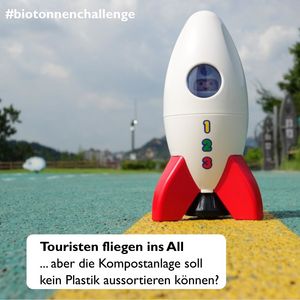 Ja, genau so ist es. Plastiktüten, Glas und Metall können nur mit einem enorm hohen Aufwand und großen Verlusten an gutem Kompost aussortiert werden. Das kann astronomisch teuer werden, so wie ein Trip ins All. Die Abfallgebühren könnten steigen und das wollen wir alle vermeiden.